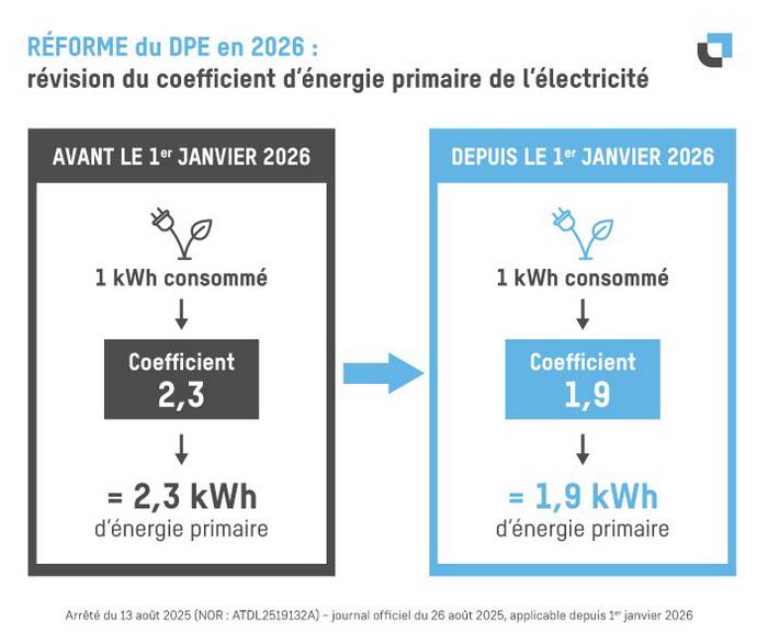 Depuis le 1er janvier 2026, le diagnostic de performance énergétique (DPE) évolue afin de mieux refléter la place de l'électricité dans le mix énergétique français, largement décarboné. Cette réforme vise également à corriger une pénalisation jugée excessive de l'électricité dans le calcul de l'énergie primaire.