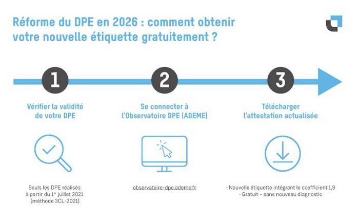 L'arrêté prévoit la possibilité de télécharger gratuitement une attestation de changement d'étiquette, générée de manière dématérialisée via l'observatoire de l'ADEME, pour les DPE en cours de validité.
