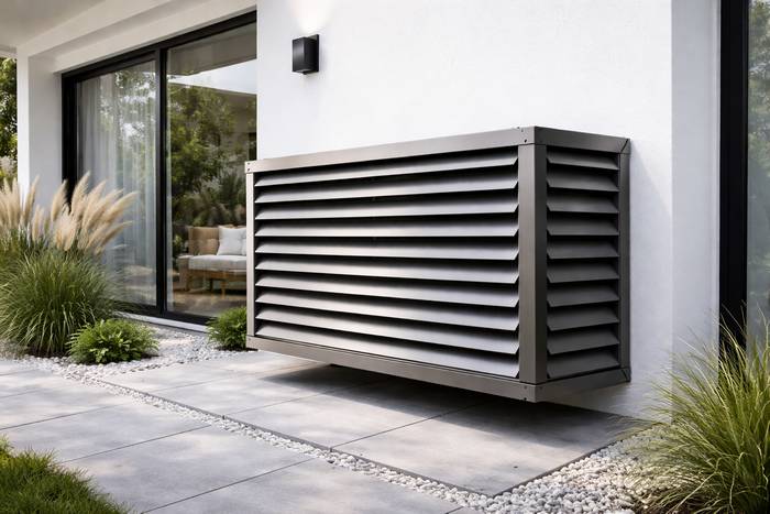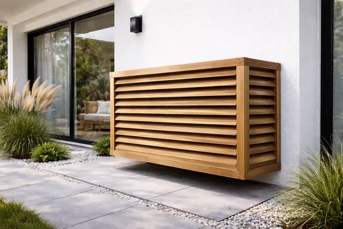 Le coffrage représente la protection la plus efficace pour les unités extérieures. Fabriqués en aluminium thermolaqué ou en bois exotique traité, ces dispositifs offrent une protection complète tout en garantissant la circulation d'air indispensable. Les persiennes assurent un flux d'air optimal pour le compresseur, contrairement aux modèles à trous simples qui peuvent provoquer une surchauffe.