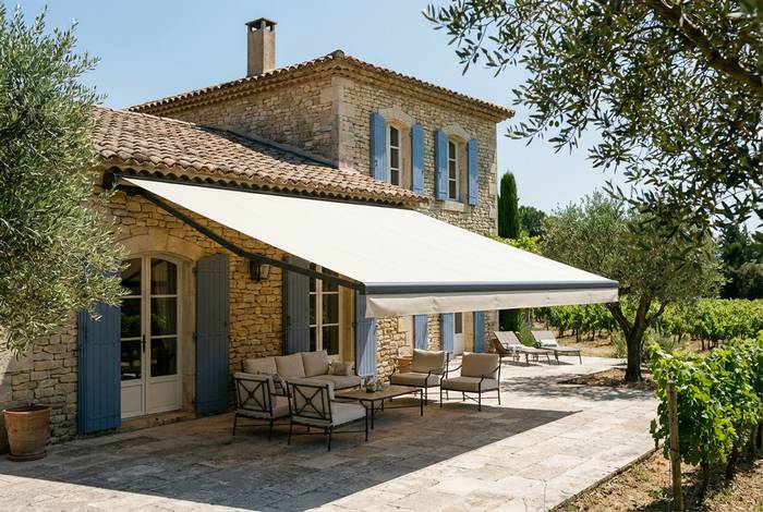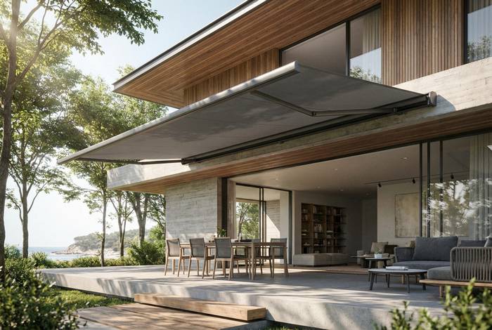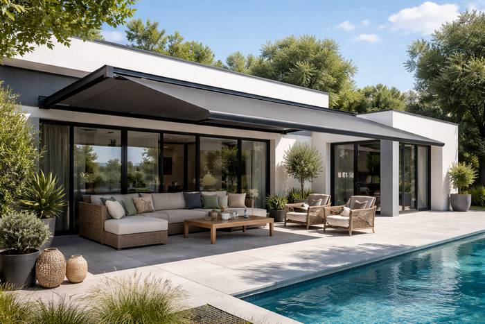 Un store banne mal incliné compromet rapidement votre investissement. L'angle optimal influence directement trois aspects cruciaux : la protection solaire, l'évacuation des eaux et la résistance au vent.