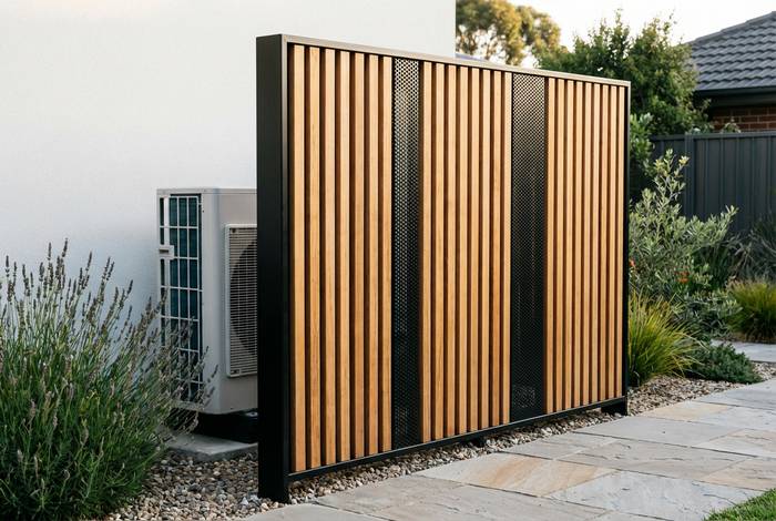 L'écran anti-bruit constitue une alternative moins encombrante au caisson complet. Installé entre la pompe à chaleur et les zones sensibles, il intercepte la propagation directe des ondes sonores. Cette solution s'avère particulièrement adaptée quand l'espace disponible limite l'installation d'un coffrage intégral.